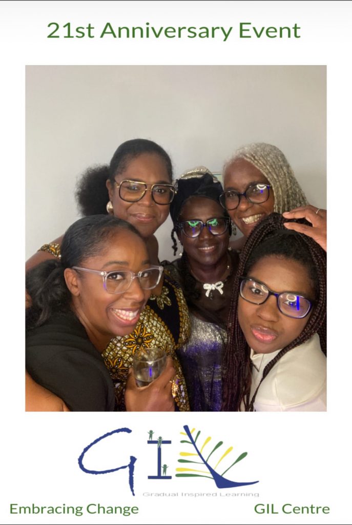 At the heart of GIL Centre is Glenis, its founder and CEO (centred in the image below). Glenis organises these yearly fundraising themed events, and this particular occasion with the theme “Embracing Change” marked the 21st anniversary celebration of her enterprise — a black-tie dinner and dance held at a 5-star hotel in Croydon… apparently in keeping with the previous yearly events. Accompanied by my Early Years Programme director, Chane Atkins, we indulged in a three-course meal, music entertainment performed by live singers and DJs, raffles and a 360 photo booth — it was a truly memorable evening!